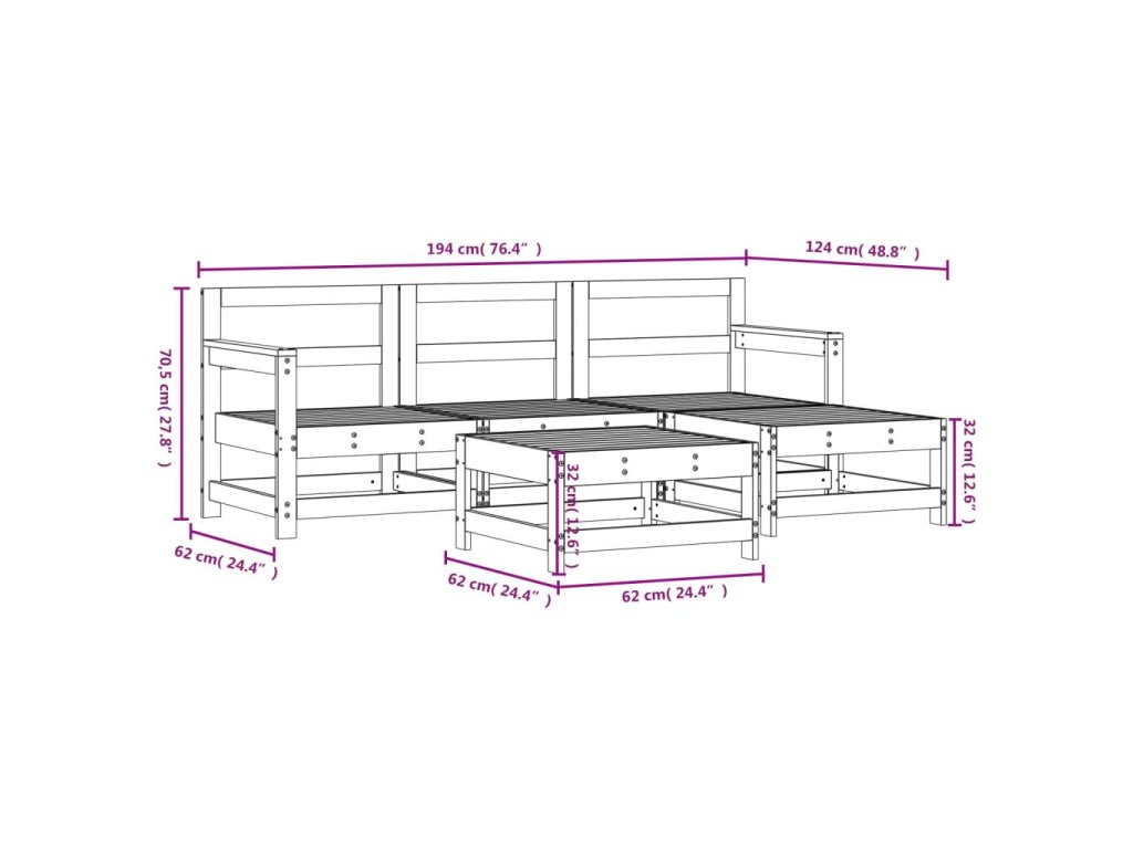 - Rozměry středové pohovky: 62 x 62 x 70,5 cm (Š x H x V)