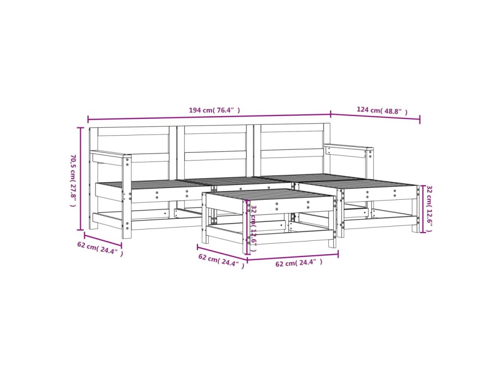 - Rozměry středové pohovky: 62 x 62 x 70,5 cm (Š x H x V)