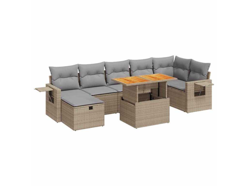 - Materiál: PE ratan, práškově lakovaná ocel, masivní akáciové dřevo s olejovou povrchovou úpravou