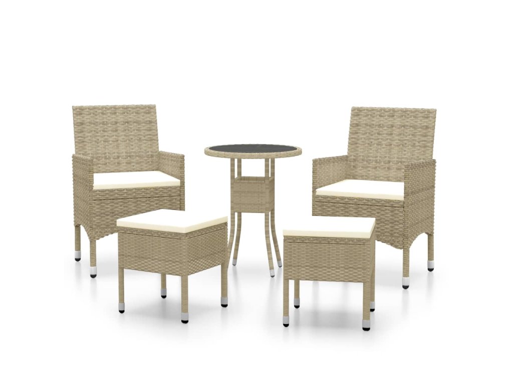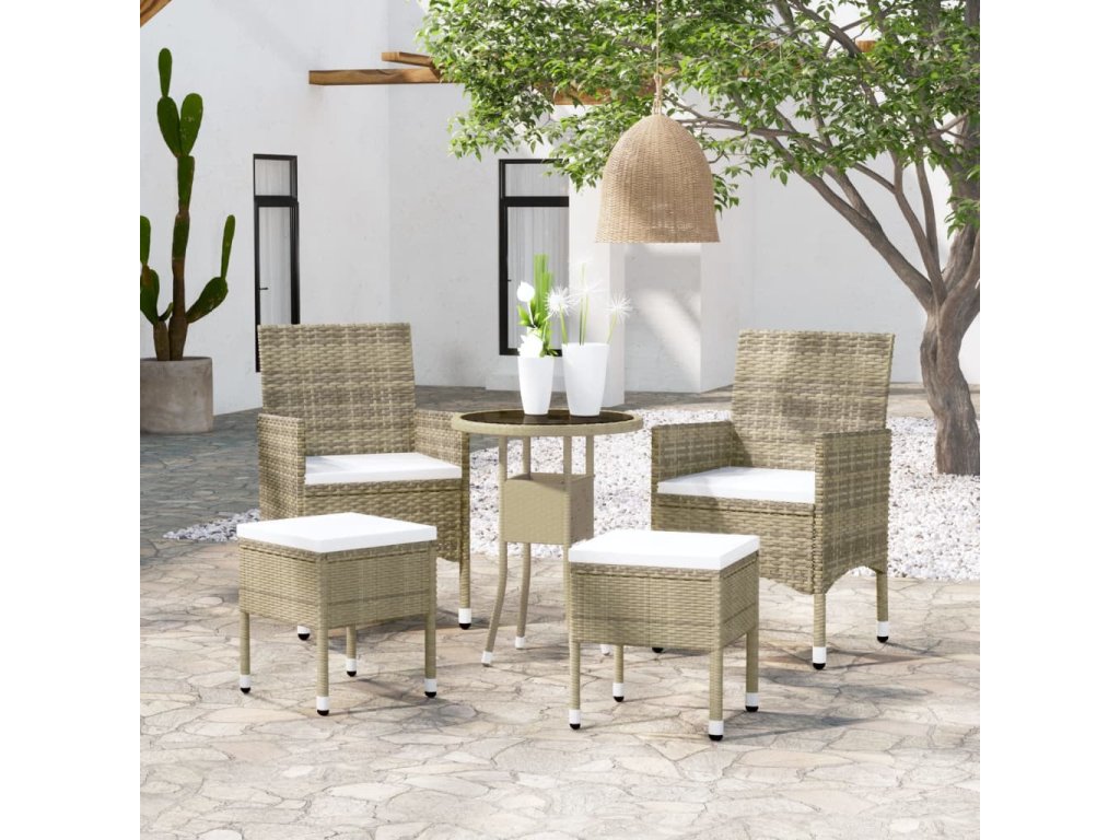 Zahradní sedací souprava má práškově lakovaný ocelový rám opletený polyratanem, takže je velmi odolná. Stolní deska je zhotovena z tvrzeného skla, což usnadňuje její čištění. Silně polstrované podušky na sedák vám navíc při sezení zajistí maximální pohodlí.