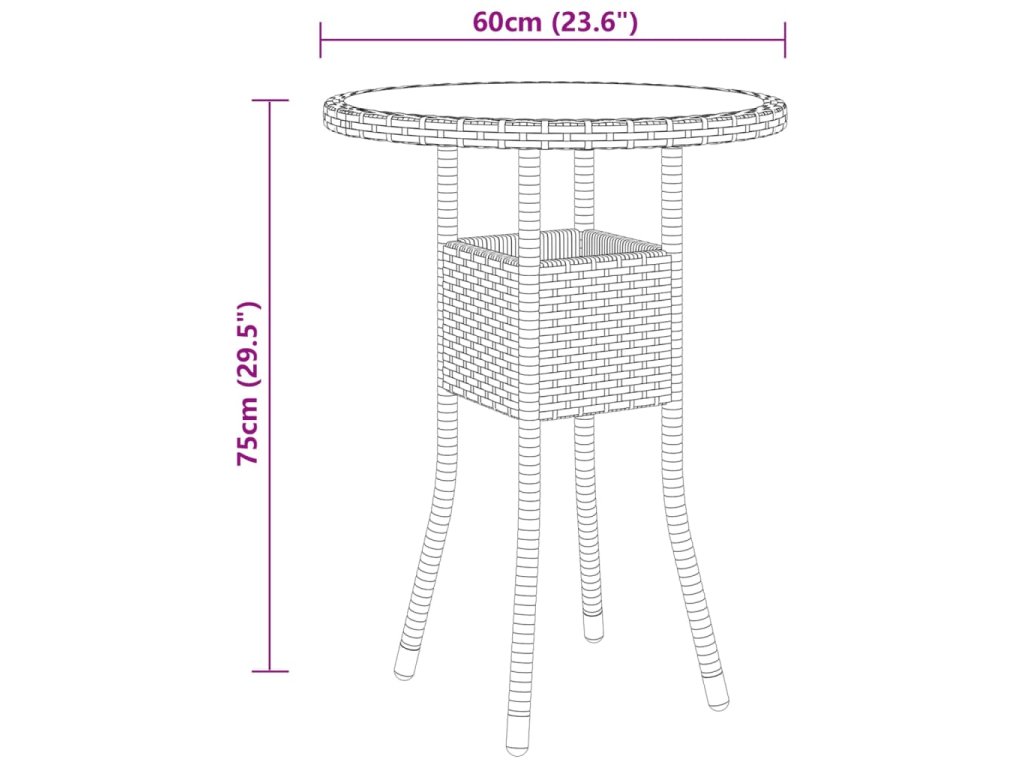 - Materiál: polyratan, práškově lakovaná ocel, tvrzené sklo