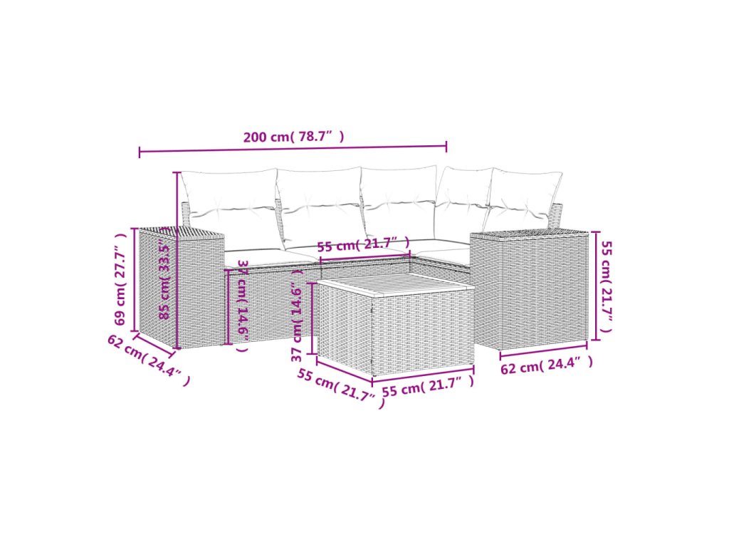 Tato zahradní sedací souprava je dokonalým doplňkem vaší zahrady, terasy nebo dvorku a poskytne vám pohodlné a příjemné místo, kde si můžete povídat s rodinou a přáteli nebo jen tak odpočívat a užívat si pobyt venku.