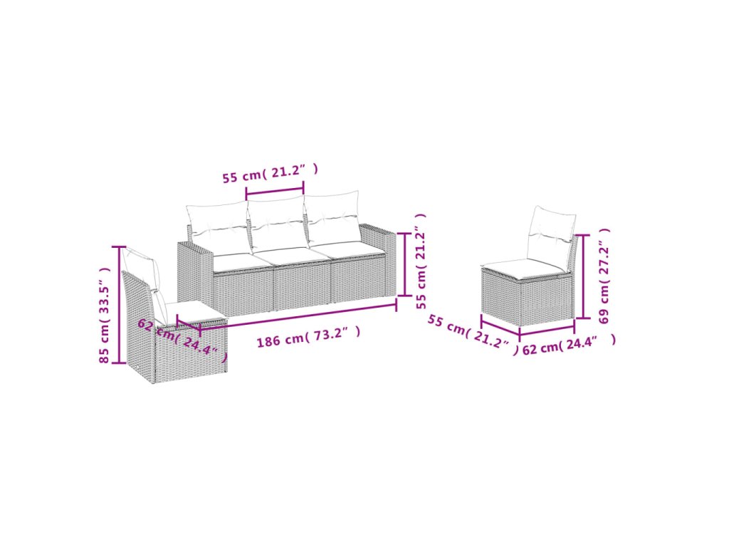 Tato zahradní sedací souprava je dokonalým doplňkem vaší zahrady, terasy nebo dvorku a poskytne vám pohodlné a příjemné místo, kde si můžete povídat s rodinou a přáteli nebo jen tak odpočívat a užívat si pobyt venku.
