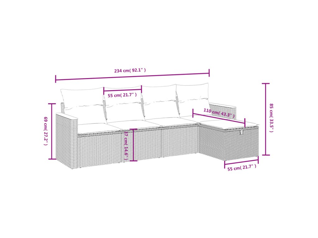 Tato zahradní sedací souprava je dokonalým doplňkem vaší zahrady, terasy nebo dvorku a poskytne vám pohodlné a příjemné místo, kde si můžete povídat s rodinou a přáteli nebo jen tak odpočívat a užívat si pobyt venku.
