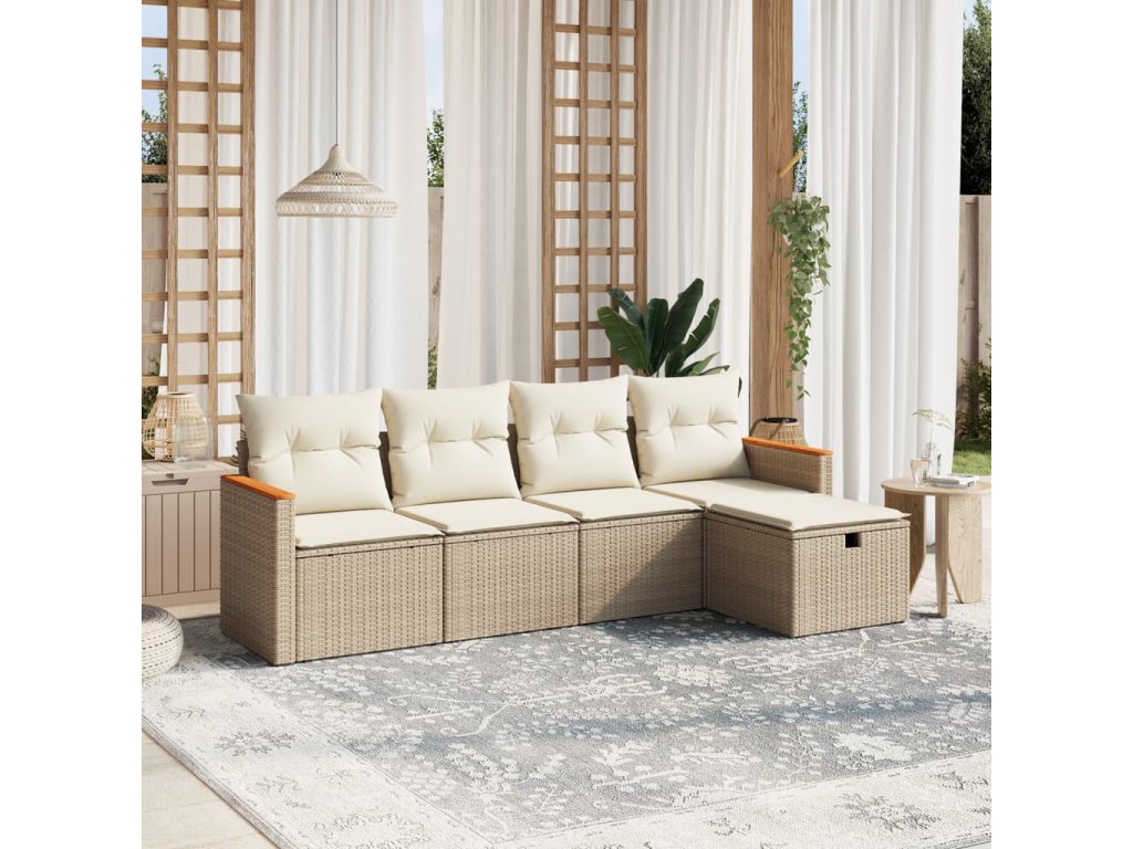 - Pohodlné sezení: Tento venkovní nábytek se silně polstrovanými poduškami a polštáři nabízí pohodlné sezení.