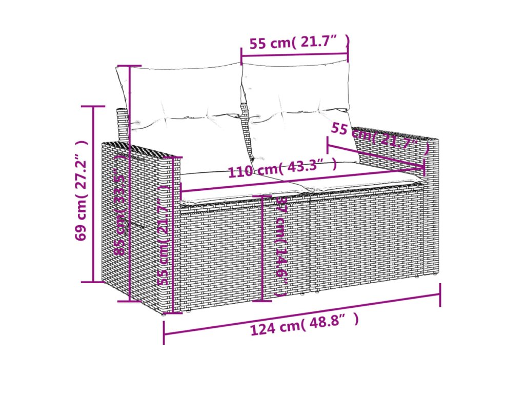 Tato zahradní sedací souprava je dokonalým doplňkem vaší zahrady, terasy nebo dvorku a poskytne vám pohodlné a příjemné místo, kde si můžete povídat s rodinou a přáteli nebo jen tak odpočívat a užívat si pobyt venku.
