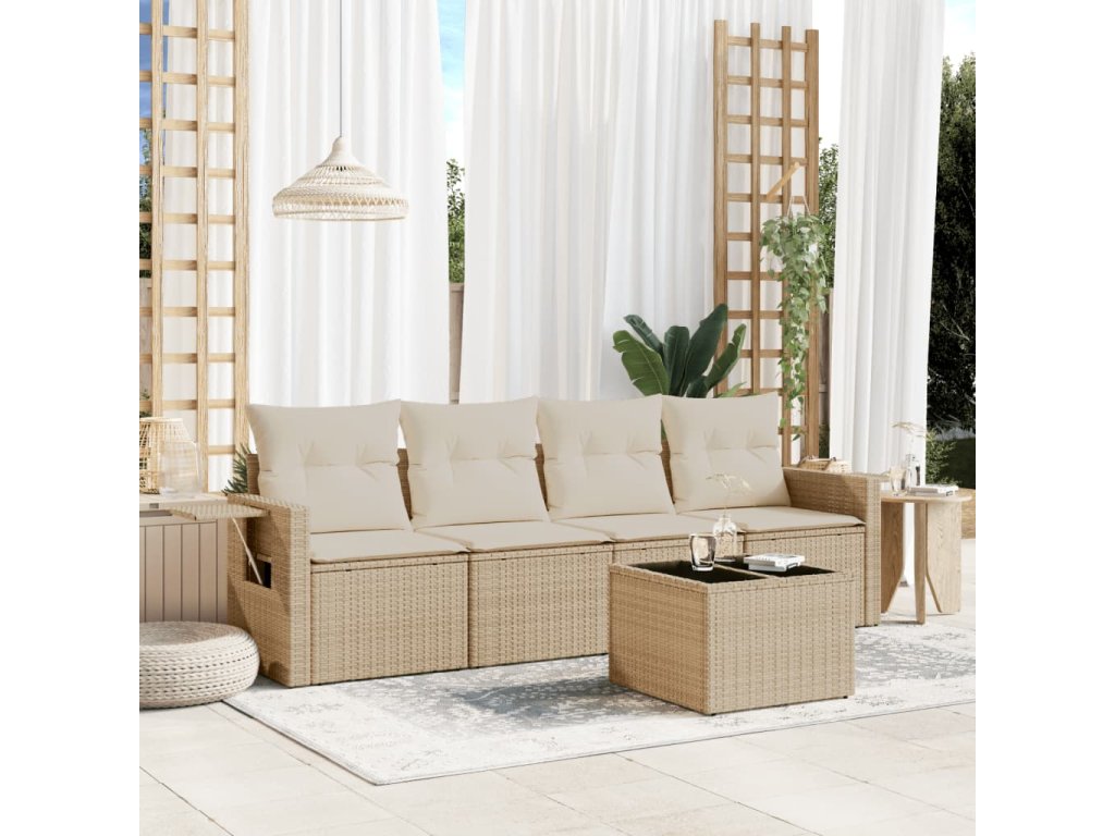 - Pohodlné sezení: Tento venkovní nábytek se silně polstrovanými poduškami a polštáři nabízí pohodlné sezení.