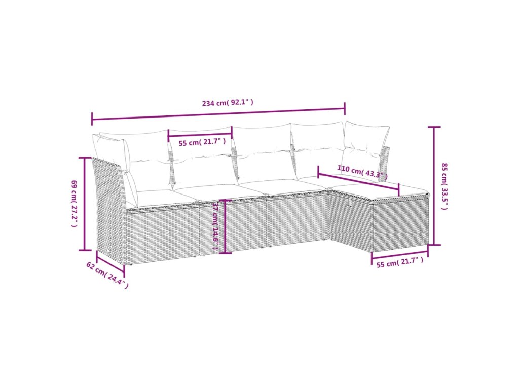 Tato zahradní sedací souprava je dokonalým doplňkem vaší zahrady, terasy nebo dvorku a poskytne vám pohodlné a příjemné místo, kde si můžete povídat s rodinou a přáteli nebo jen tak odpočívat a užívat si pobyt venku.