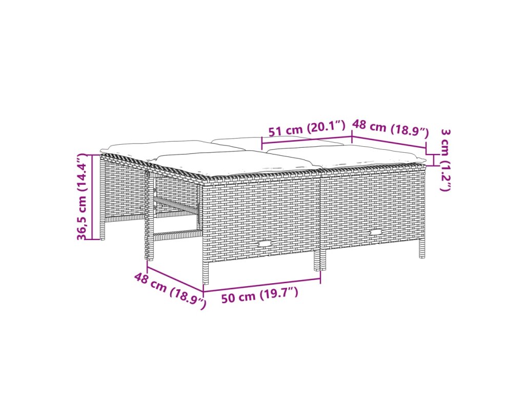 - Rozměry podušky na sedák (podnožka): 51 x 48 x 3 cm (Š x H x T)