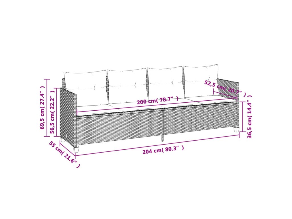 - Rozměry podušky na sedák (4místná pohovka): 200 x 52,5 x 3 cm (Š x H x T)