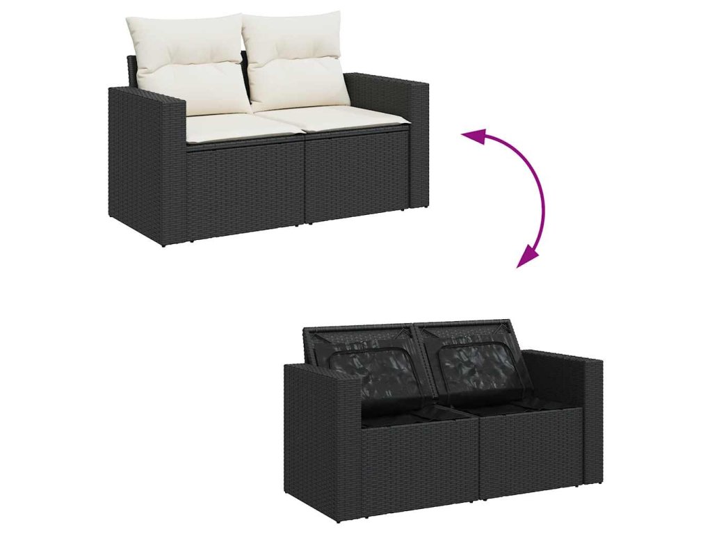 - Úložný prostor s voděodolným vakem: Každý zahradní sedací díl má úložný prostor pod sedákem, který je opatřen voděodolnou vložkou a poslouží vám k ukládání podušek, hraček a dalších věcí. Vnitřní vaky mají horní kryt a lze je bezpečně připevnit k sedákům pomocí suchého zipu, což zaručí větší stabilitu.