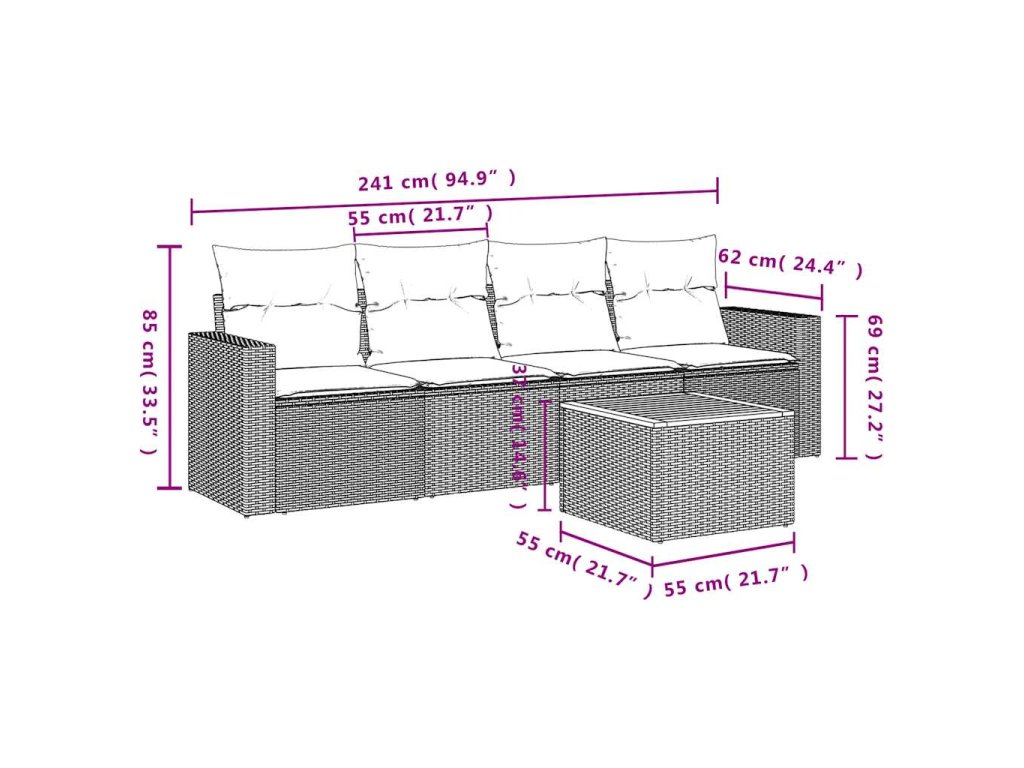 Tato zahradní sedací souprava je dokonalým doplňkem vaší zahrady, terasy nebo dvorku a poskytne vám pohodlné a příjemné místo, kde si můžete povídat s rodinou a přáteli nebo jen tak odpočívat a užívat si pobyt venku.