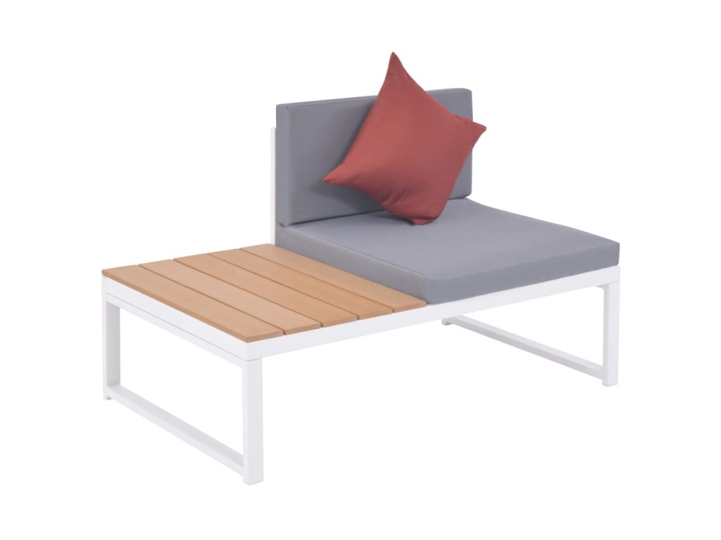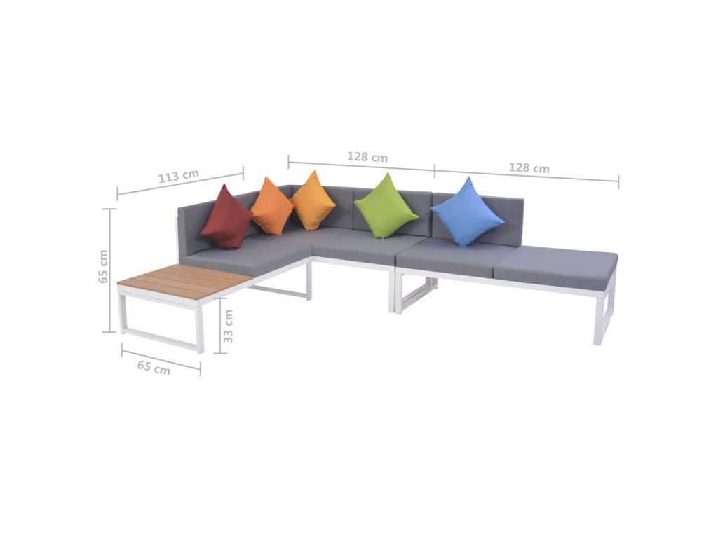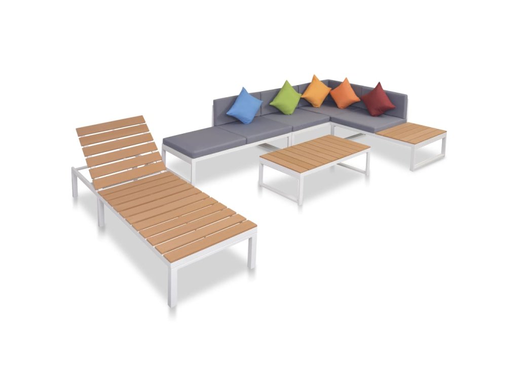 Náš snadno čistitelný a odolný zahradní nábytek je vyroben z vysoce kvalitního hliníku a WPC, takže je vhodný pro každodenní venkovní použití. Díky hliníkovému rámu je sestava velmi robustní a odolná. Díky lehké hliníkové konstrukci se s ní snadno pohybuje. Tato sada je dodávána s vysoce komfortním, tlustým polstrováním sedadel a zadními polštáři a 5 polštáři v různých barvách.