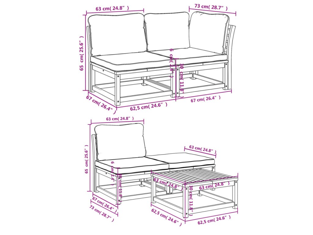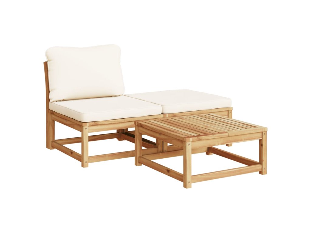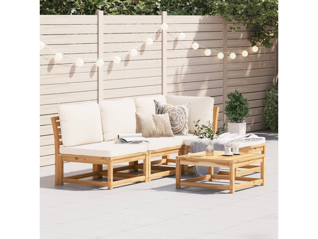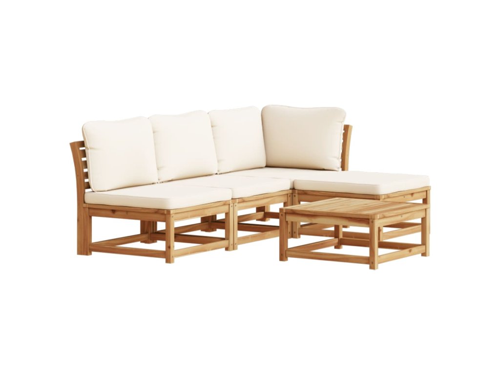 Tato dřevěná zahradní sedací souprava s poduškami má elegantní design a je skvělou volbou pro odpočinek a zábavu na zahradě nebo terase.