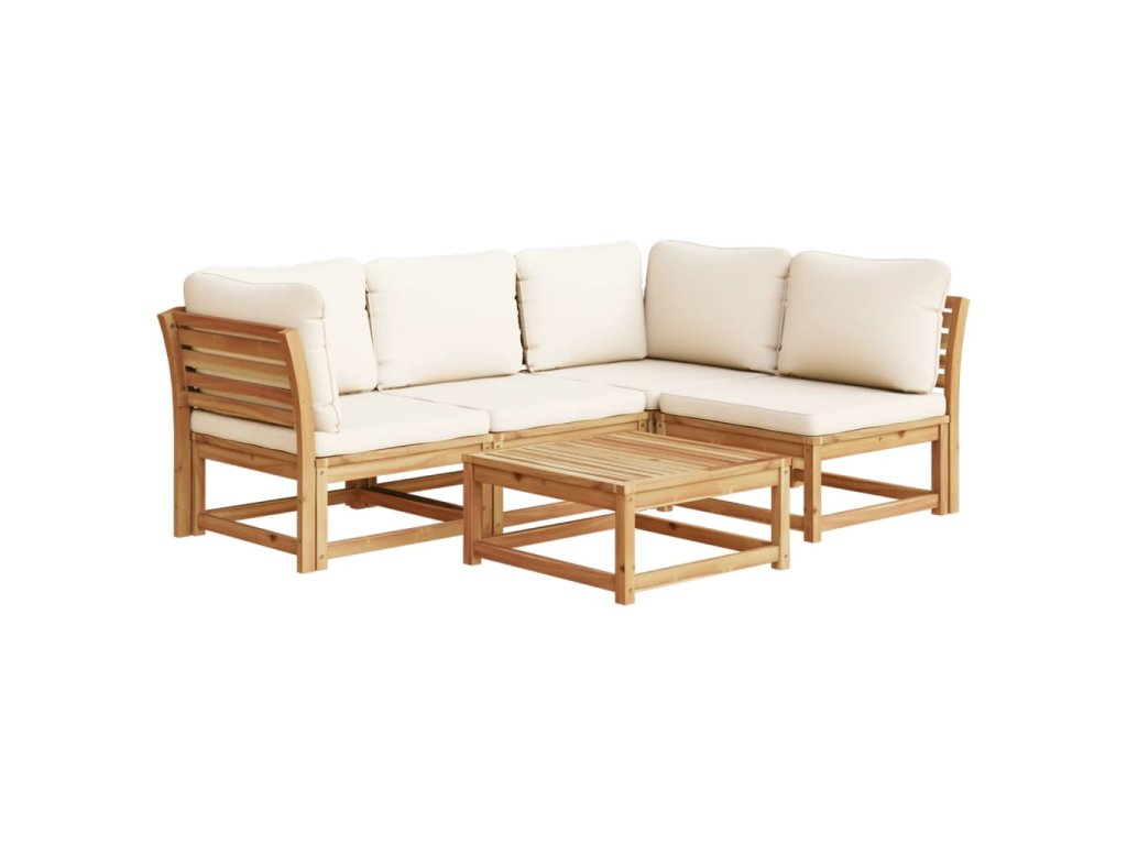 Tato dřevěná zahradní sedací souprava s poduškami má elegantní design a je skvělou volbou pro odpočinek a zábavu na zahradě nebo terase.