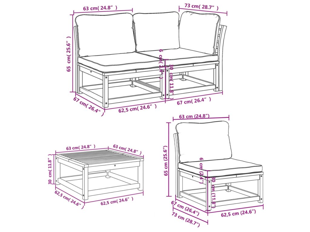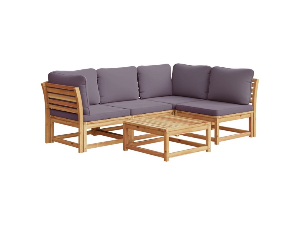 Tato dřevěná zahradní sedací souprava s poduškami má elegantní design a je skvělou volbou pro odpočinek a zábavu na zahradě nebo terase.