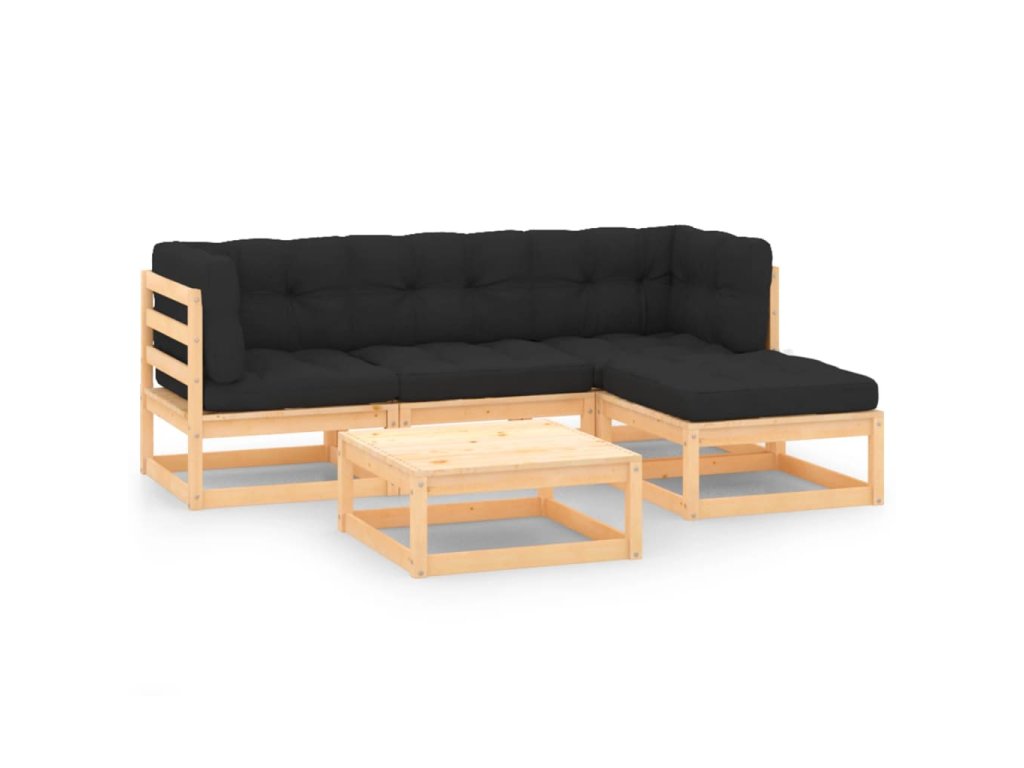 Setul de canapea este realizat din lemn masiv de pin, ceea ce îl face robust și stabil. Acest set are o construcție solidă și necesită întreținere minimă. Pernele adaugă un plus de confort. Acest set de mobilier pentru relaxare va adăuga o notă de farmec rustic spațiului dvs. de locuit în aer liber.