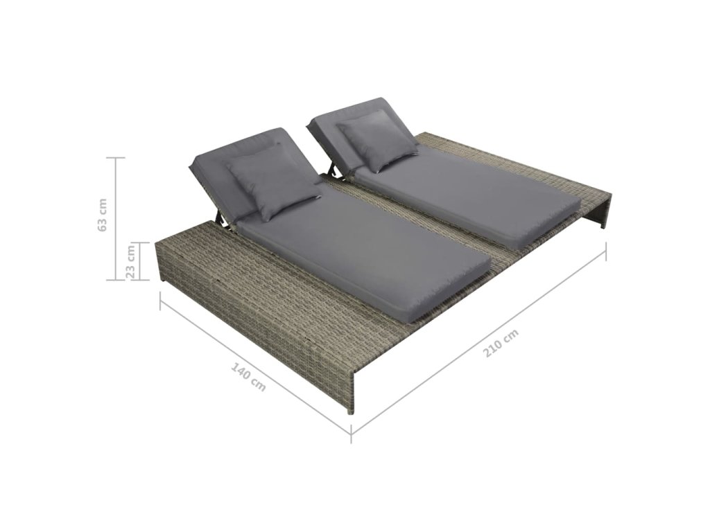 - Rozměry dvojitého lehátka: 210 x 140 x 23/63 cm (D x Š x V)