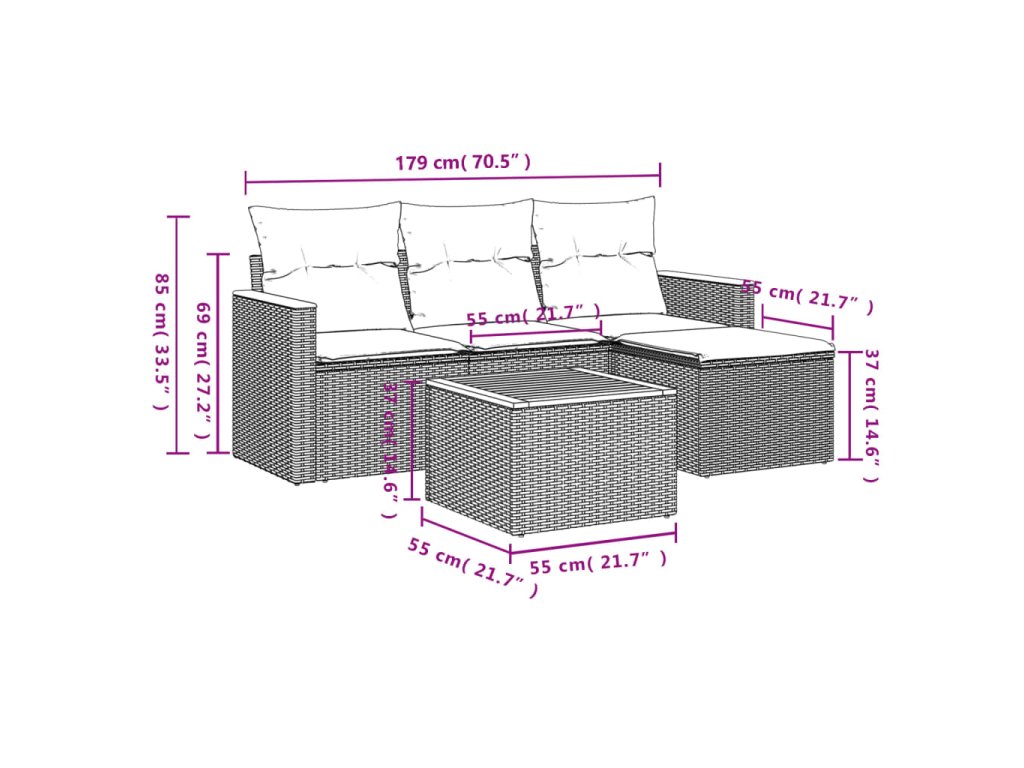Tato zahradní sedací souprava je dokonalým doplňkem vaší zahrady, terasy nebo dvorku a poskytne vám pohodlné a příjemné místo, kde si můžete povídat s rodinou a přáteli nebo jen tak odpočívat a užívat si pobyt venku.