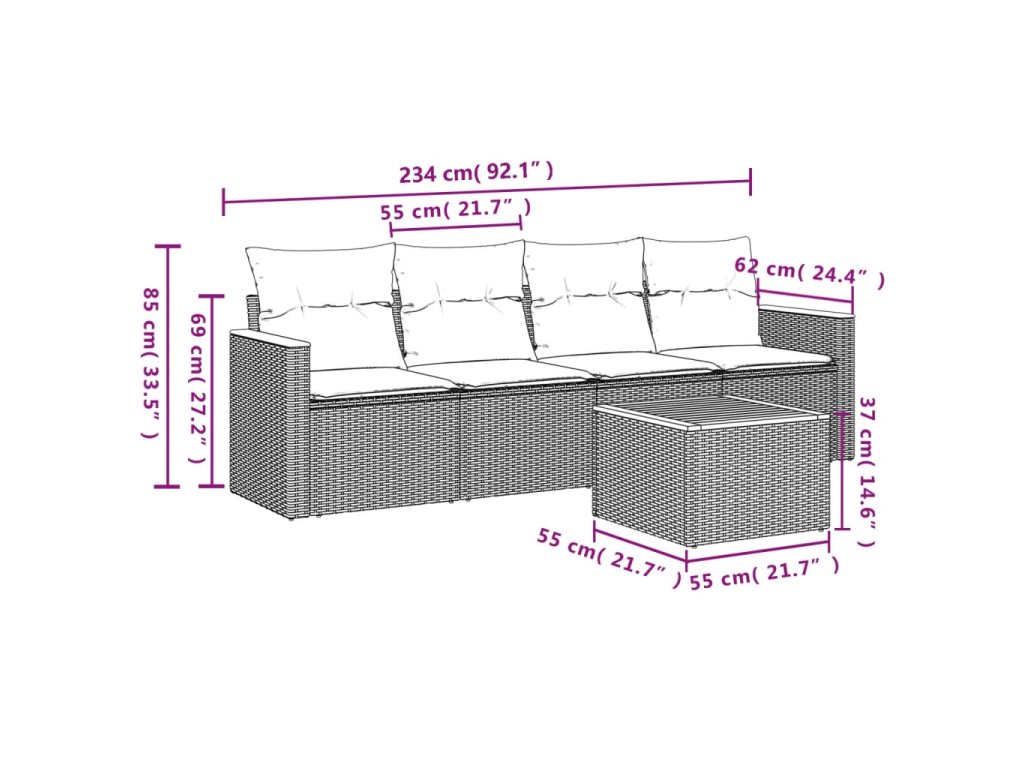Tato zahradní sedací souprava je dokonalým doplňkem vaší zahrady, terasy nebo dvorku a poskytne vám pohodlné a příjemné místo, kde si můžete povídat s rodinou a přáteli nebo jen tak odpočívat a užívat si pobyt venku.