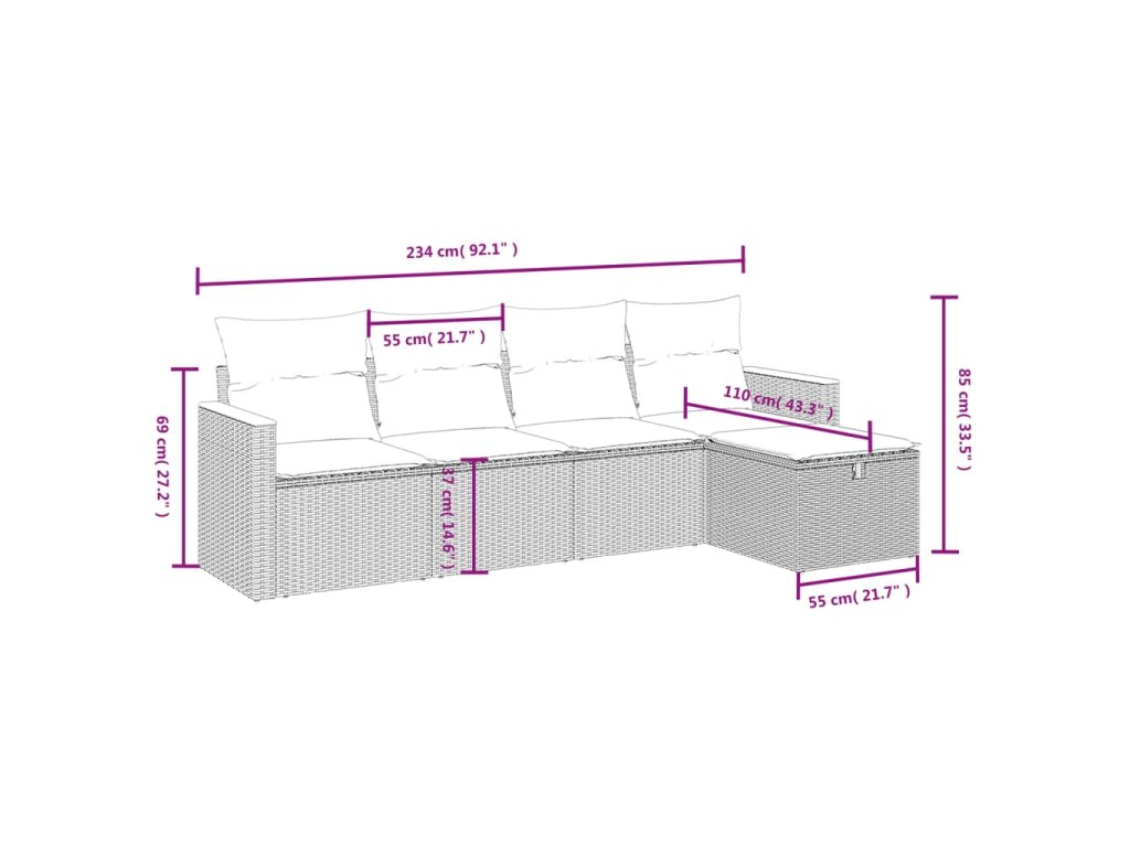 Tato zahradní sedací souprava je dokonalým doplňkem vaší zahrady, terasy nebo dvorku a poskytne vám pohodlné a příjemné místo, kde si můžete povídat s rodinou a přáteli nebo jen tak odpočívat a užívat si pobyt venku.