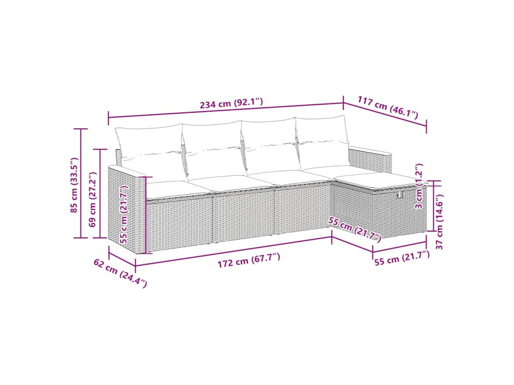 Tato zahradní sedací souprava je dokonalým doplňkem vaší zahrady, terasy nebo dvorku a poskytne vám pohodlné a příjemné místo, kde si můžete povídat s rodinou a přáteli nebo jen tak odpočívat a užívat si pobyt venku.