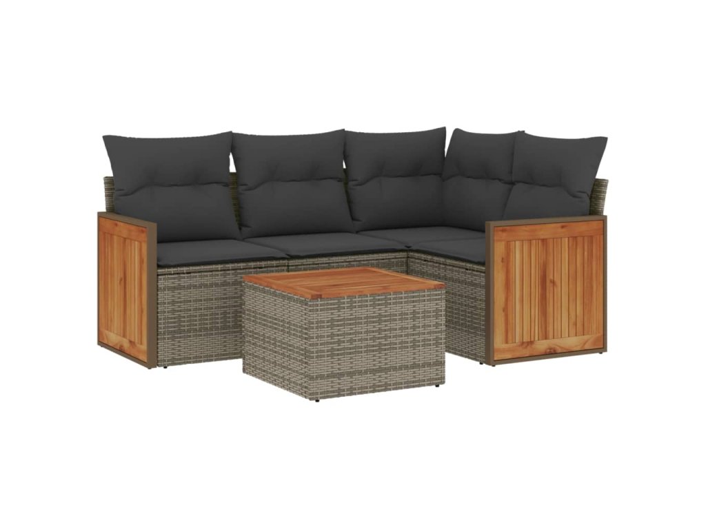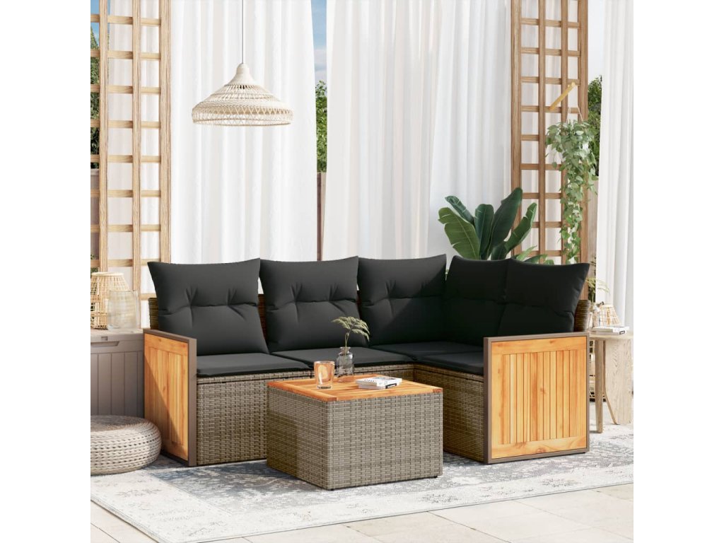 - Materiál: PE ratan, práškově lakovaná ocel, masivní akáciové dřevo s olejovou povrchovou úpravou