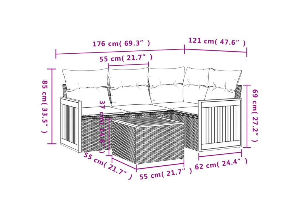 Tato zahradní sedací souprava je dokonalým doplňkem vaší zahrady, terasy nebo dvorku a poskytne vám pohodlné a příjemné místo, kde si můžete povídat s rodinou a přáteli nebo jen tak odpočívat a užívat si pobyt venku.