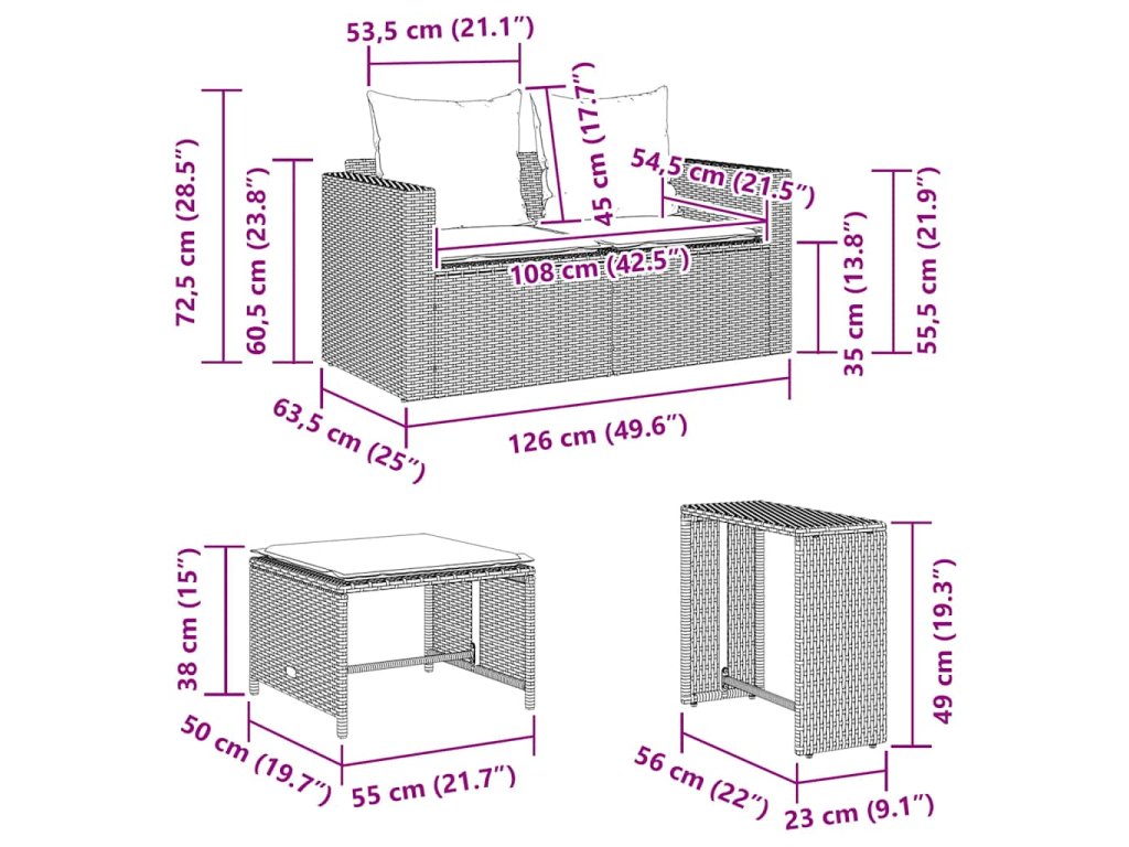 Tato zahradní sedací souprava je dokonalým doplňkem vaší zahrady, terasy nebo dvorku a poskytne vám pohodlné a příjemné místo, kde si můžete povídat s rodinou a přáteli nebo jen tak odpočívat a užívat si pobyt venku.