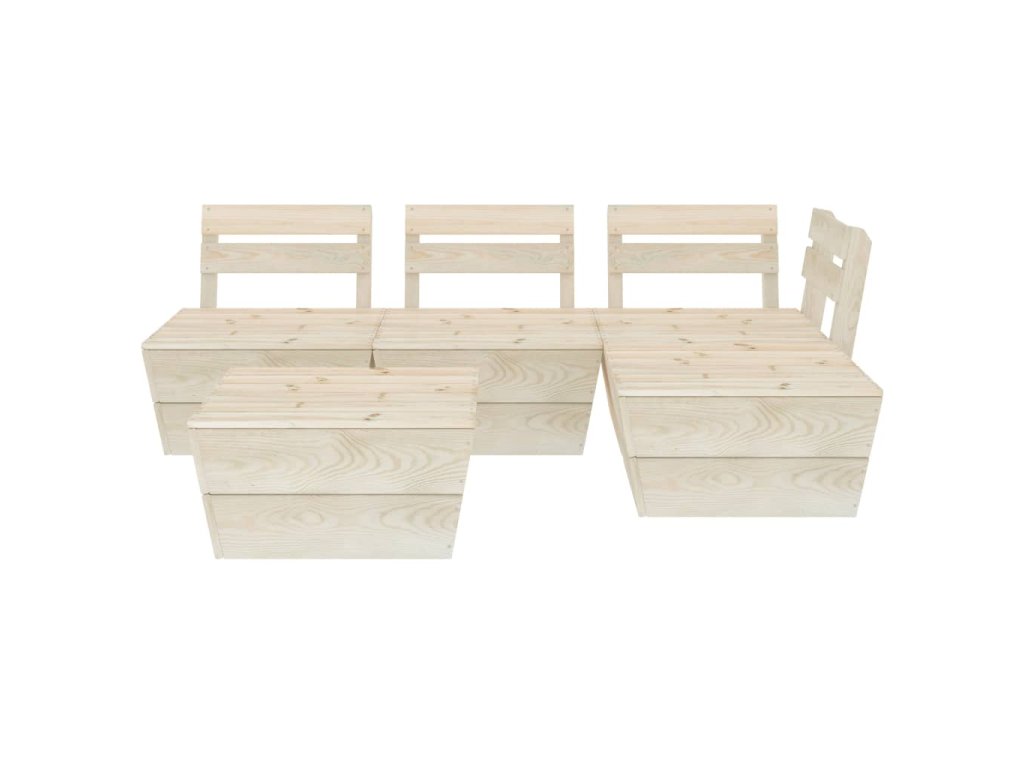 Na této 5dílné zahradní sedací soupravě z palet si můžete skvěle odpočinout, užívat si krásného počasí, zdřímnout si nebo si povídat s rodinou či přáteli. Nadčasový design nábytku z palet vnese na vaši zahradu, terasu či do obývacího pokoje rustikální kouzlo.