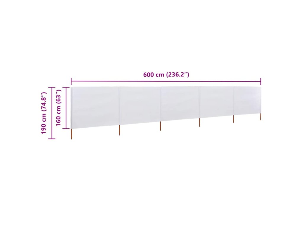 Naše 5dílná skládací zástěna proti větru o celkové délce 600 cm a výšce 160 cm představuje ideální způsob, jak se schovat před větrem či průvanem.