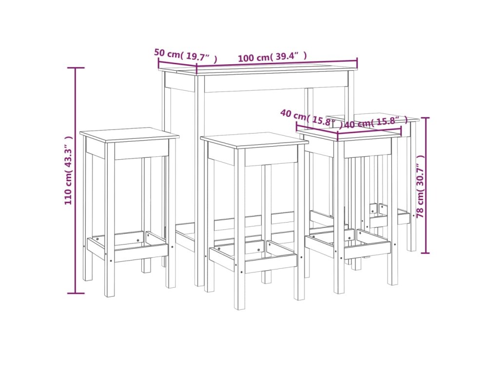 - Pevná horní deska: Barový stůl této nábytkové sestavy má pevnou desku, která je ideální pro odložení nápojů a jídla či k vystavení různých dekorativních předmětů.