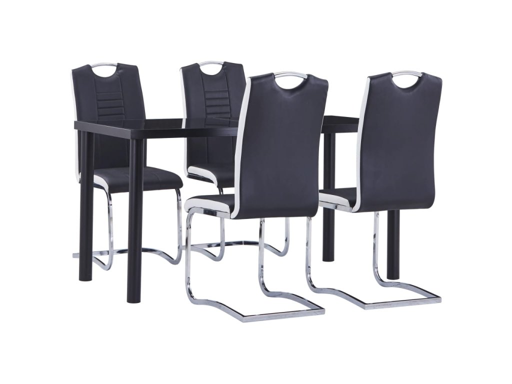 Stůl má hladkou stolní desku z tvrzeného skla, kterou snadno očistíte vlhkým hadříkem. Práškově lakovaný kovový rám přispívá k jeho robustní konstrukci a zajišťuje výtečnou stabilitu a odolnost. Židle jsou čalouněné měkkou umělou kůží a silně polstrované, aby vám poskytly maximální pohodlí. Sedáky mají ergonomický design, takže se na nich můžete příjemně uvelebit. Zpevněné pochromovaným ocelovým rámem, tyto židle jsou také výjimečně robustní a stabilní. Na opěradle navíc najdete praktickou rukojeť, aby se vám lépe přenášely. Sestavení jídelní sestavy je jednoduché.