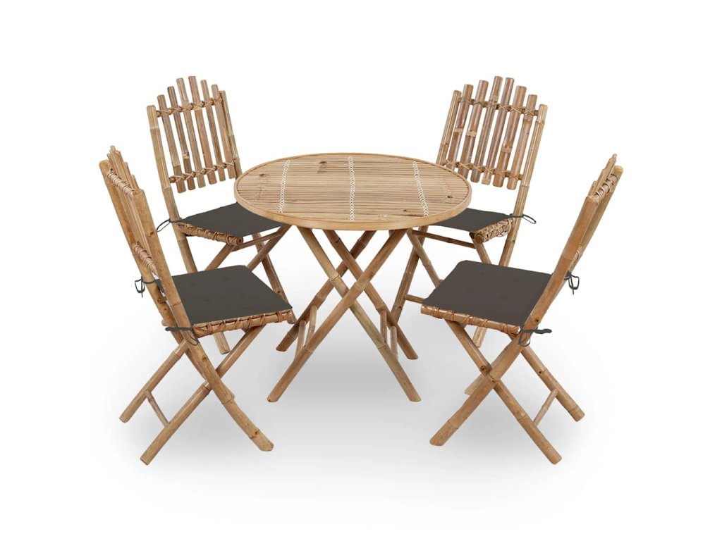Tento bambusový skládací jídelní set s poduškami představuje dokonalou volbu pro slavnostní stolování nebo jen tak pro lenošení.