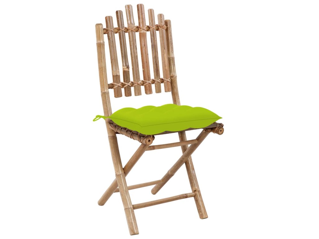 Zahradní jídelní set je zhotovený z masivního bambusu, je tedy pevný a hodně toho vydrží. Skvěle také odolává vodě a dalším klimatickým vlivům a k očištění vám postačí navlhčený hadřík. Stůl i židle lze složit, abyste ušetřili místo, když je zrovna nepoužíváte. Přiložené podušky se vám při odpočinku postarají o maximální pohodlí. Jsou ušité ze 100% polyesteru s voděodolnou úpravou a každá z nich je opatřená dvěma páry šňůrek, kterými je můžete k židli pevně přichytit.