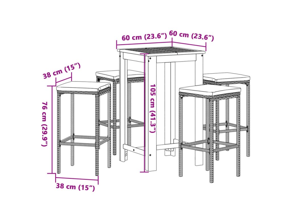 Tento zahradní barový set s elegantním a moderním designem představuje skvělou volbu pro stolování nebo relaxaci na zahradě.