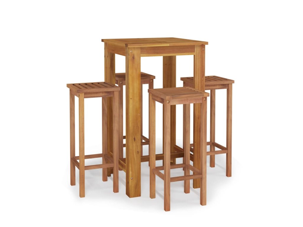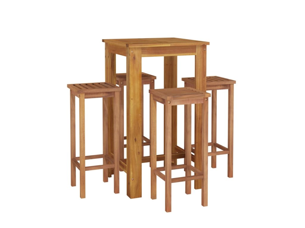 - Masivní akáciové dřevo: Masivní akáciové dřevo je krásný přírodní materiál. Akáciové dřevo je tropické tvrdé dřevo, které má hustou strukturu a je pevné a odolné. Tento barový set je zhotovený z masivního akáciového dřeva, je tedy vhodný pro vnitřní i venkovní použití.