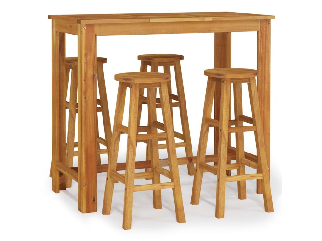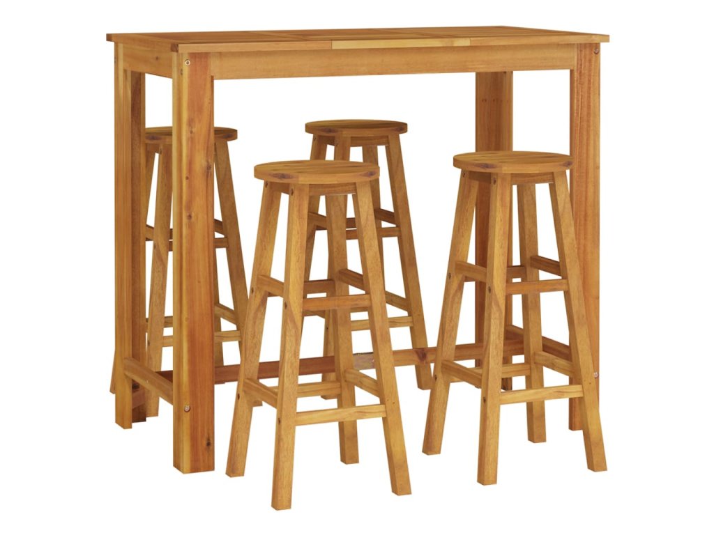 - Masivní akáciové dřevo: Masivní akáciové dřevo je krásný přírodní materiál. Akáciové dřevo je tropické tvrdé dřevo, které má hustou strukturu a je pevné a odolné. Tento barový set je zhotovený z masivního akáciového dřeva, je tedy vhodný pro vnitřní i venkovní použití.