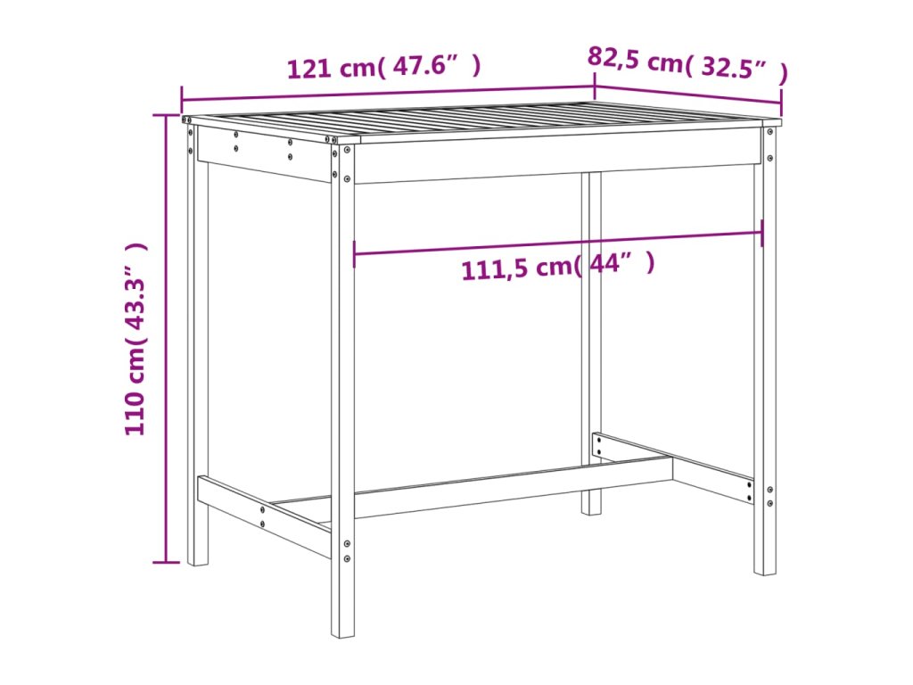 - Rozměry zahradního stolku: 121 x 82,5 x 110 cm (D x Š x V)