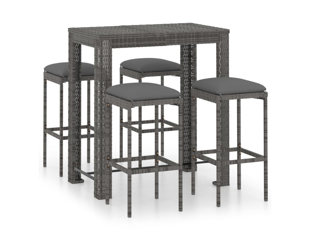 Barový stůl je zpevněný ocelovým rámem s práškovým nástřikem, takže je stabilní a bytelný. Čtvercová deska stolu je ideální pro servírování nápojů, jídla nebo k vystavování dekorativních předmětů. Stoličky mají robustní rám z oceli a jsou vyrobené z klimaticky odolného PE ratanu, který je zárukou stability a umožňuje snadné přenášení. Poduška a opěrka na nohy přispívají k většímu pohodlí při sezení na stoličce. Polyesterový potah na podušky se skrytým zipem usnadňuje čištění.