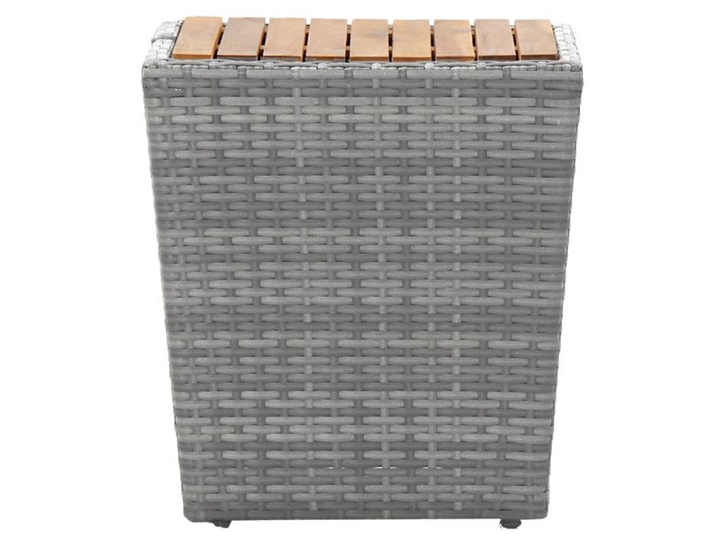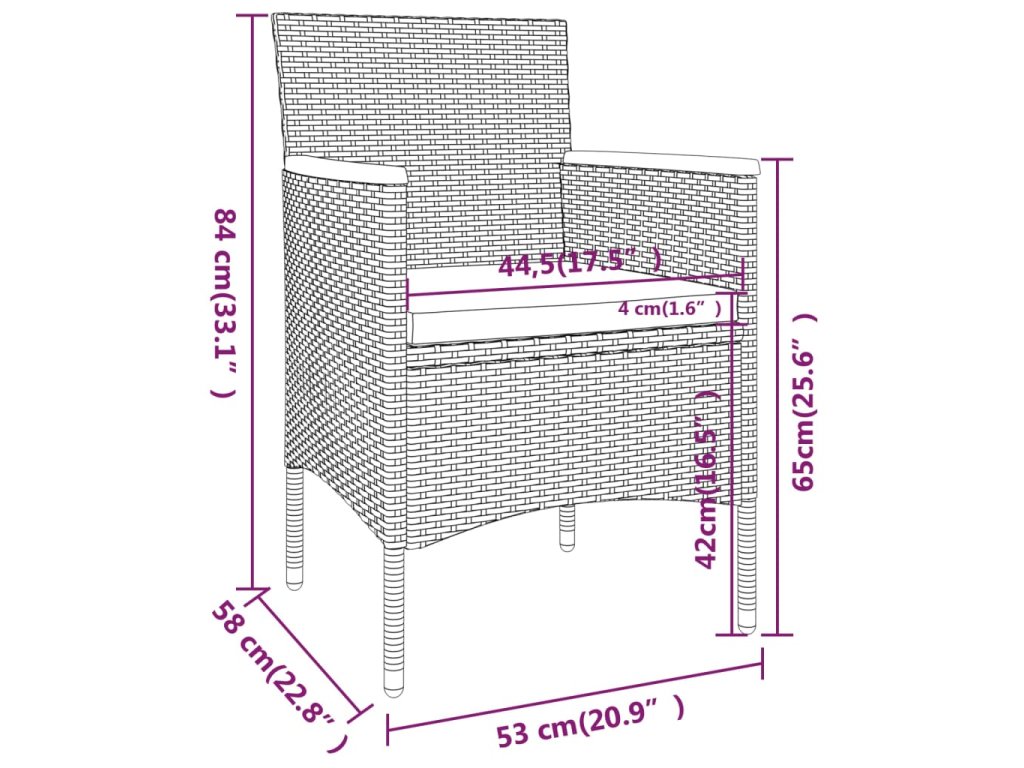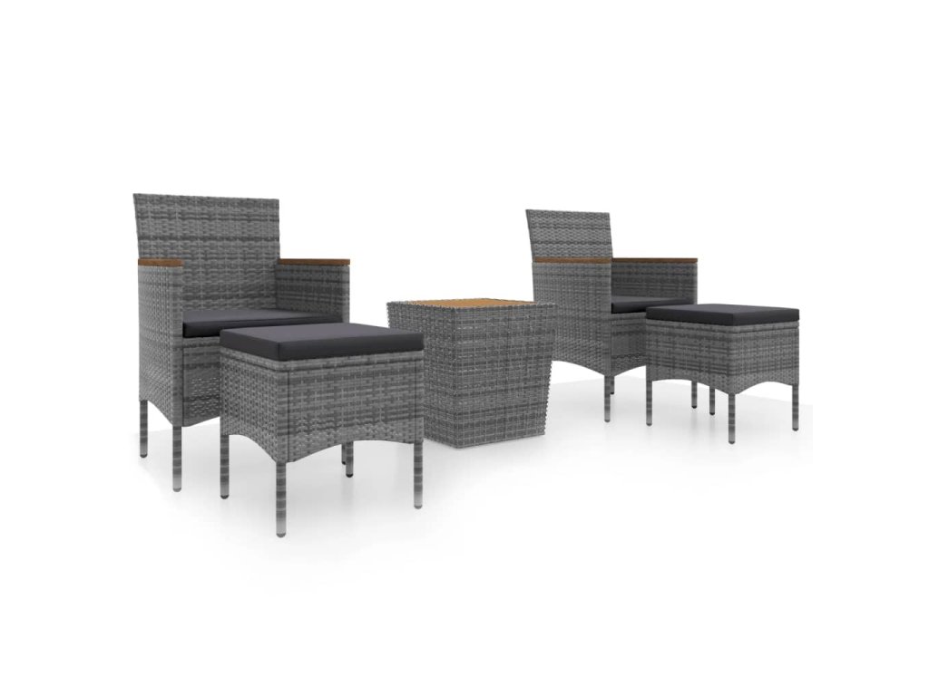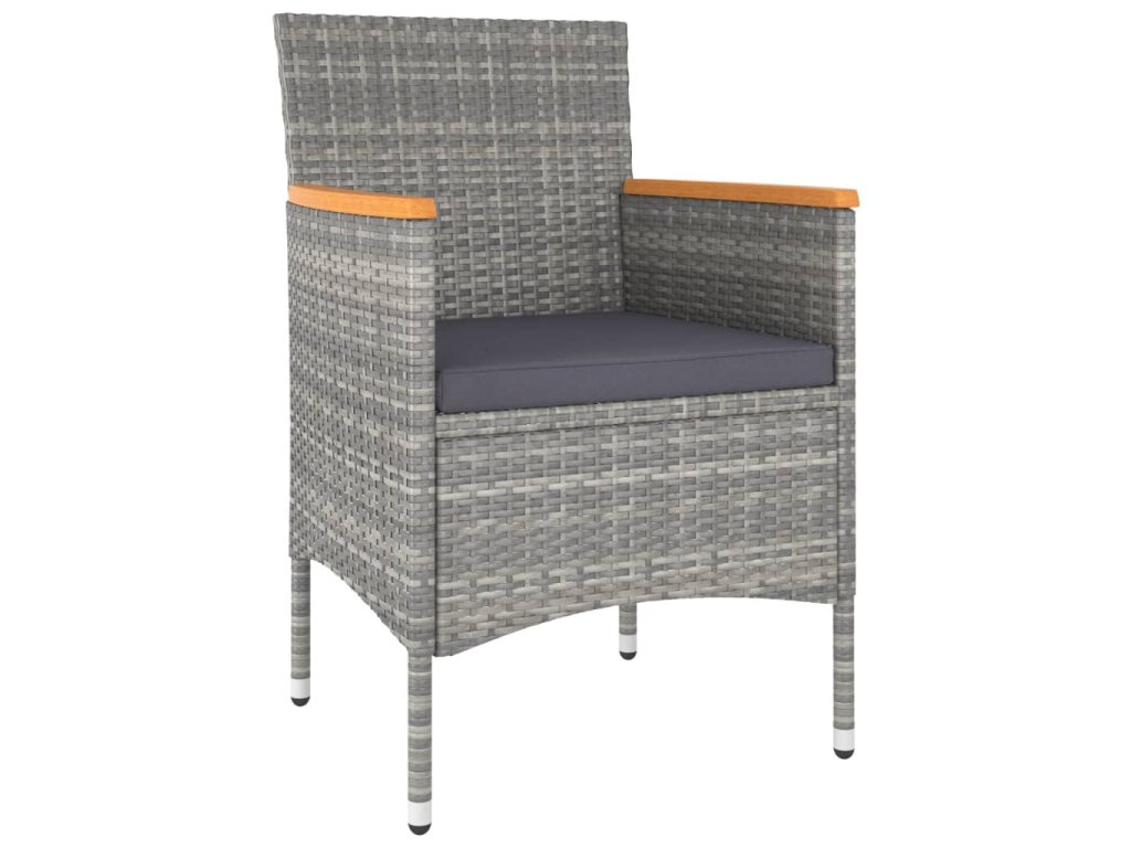 Stůl a židle mají práškově lakovaný ocelový rám opletený PE ratanem, který skvěle odolává povětrnostním vlivům i UV záření, jsou tedy stabilní a mají dlouhou životnost. Židle jsou navrženy se zaobleným opěradlem a područkami pro maximální pohodlí. Součástí balení jsou také podušky, které vám poskytnou ještě větší komfort. Potah je navíc vybaven zipem, takže se dá jednoduše sejmout a vyprat. Stolní deska je zhotovená zmasivního akáciového dřeva zasazeného v pevném rámu, snadno se tedy čistí a udržuje. Dvě podnožky zároveň slouží jako dodatečná místa k sezení. Nábytek se vyznačuje lehkou konstrukcí, všechny kusy lze tudíž bez námahy přemisťovat, přestavovat a přepravovat.