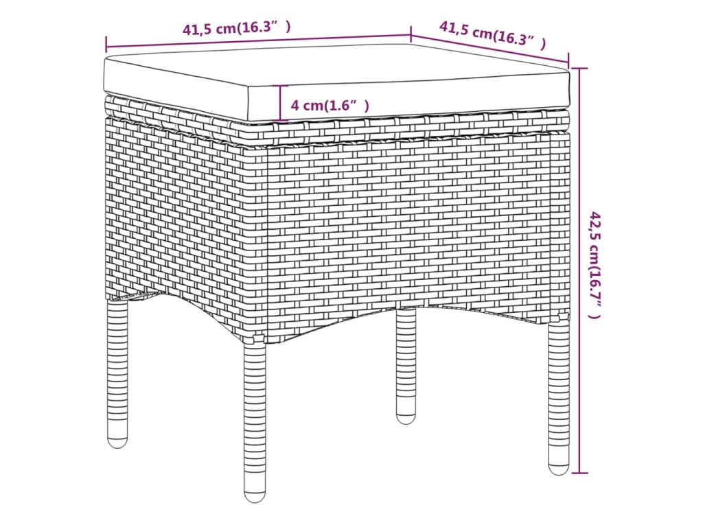 - Rozměry podnožky: 41,5 x 41,5 x 42,5 cm (Š x H x V)