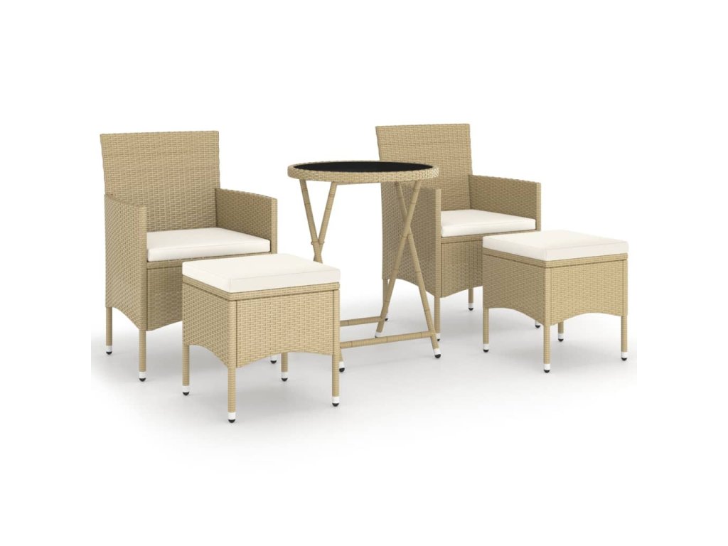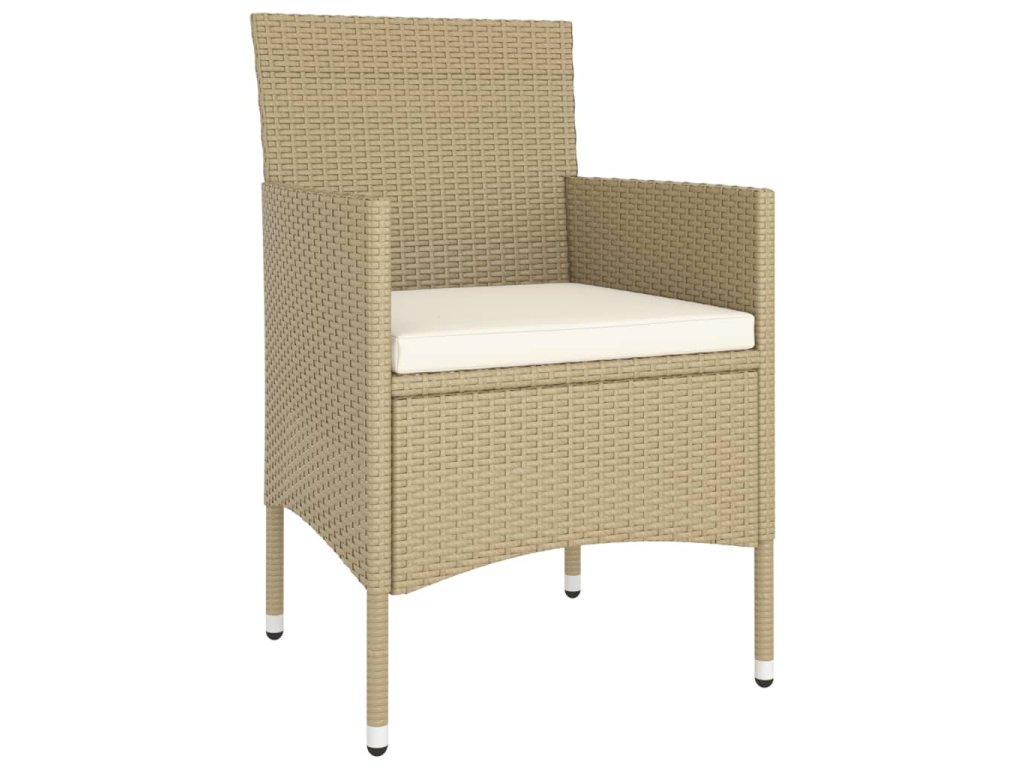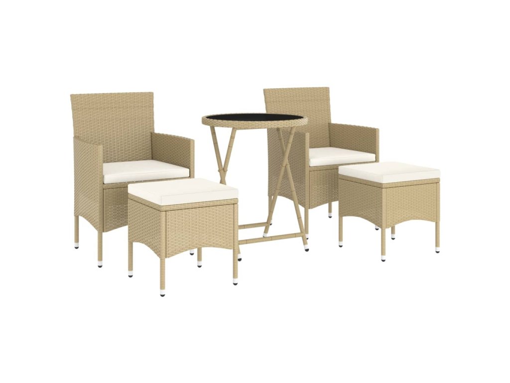 Stůl a židle mají práškově lakovaný ocelový rám opletený PE ratanem, který skvěle odolává povětrnostním vlivům i UV záření, jsou tedy stabilní a mají dlouhou životnost. Židle jsou navrženy se zaobleným opěradlem a područkami pro maximální pohodlí. Součástí balení jsou také podušky, které vám poskytnou ještě větší komfort. Potah je navíc vybaven zipem, takže se dá jednoduše sejmout a vyprat. Stolní deska je zhotovená ze zesíleného tvrzeného skla zasazeného v pevném rámu, snadno se tedy čistí a udržuje. Dvě podnožky zároveň slouží jako dodatečná místa k sezení. Nábytek se vyznačuje lehkou konstrukcí, všechny kusy lze tudíž bez námahy přemisťovat, přestavovat a přepravovat.
