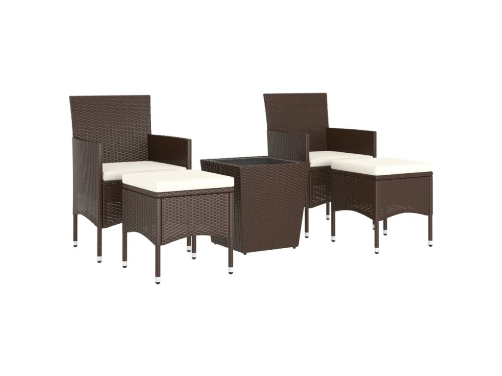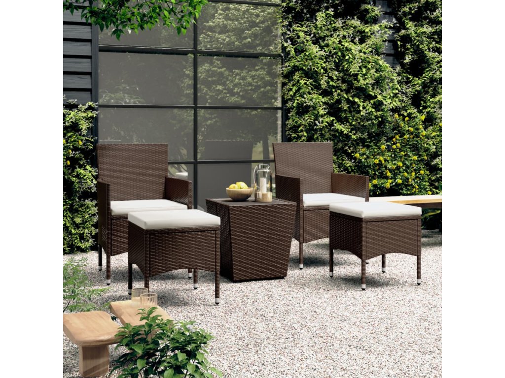 Stůl a židle mají práškově lakovaný ocelový rám opletený PE ratanem, který skvěle odolává povětrnostním vlivům i UV záření, jsou tedy stabilní a mají dlouhou životnost. Židle jsou navrženy se zaobleným opěradlem a područkami pro maximální pohodlí. Součástí balení jsou také podušky, které vám poskytnou ještě větší komfort. Potah je navíc vybaven zipem, takže se dá jednoduše sejmout a vyprat. Stolní deska je zhotovená ze zesíleného tvrzeného skla zasazeného v pevném rámu, snadno se tedy čistí a udržuje. Dvě podnožky zároveň slouží jako dodatečná místa k sezení. Nábytek se vyznačuje lehkou konstrukcí, všechny kusy lze tudíž bez námahy přemisťovat, přestavovat a přepravovat.