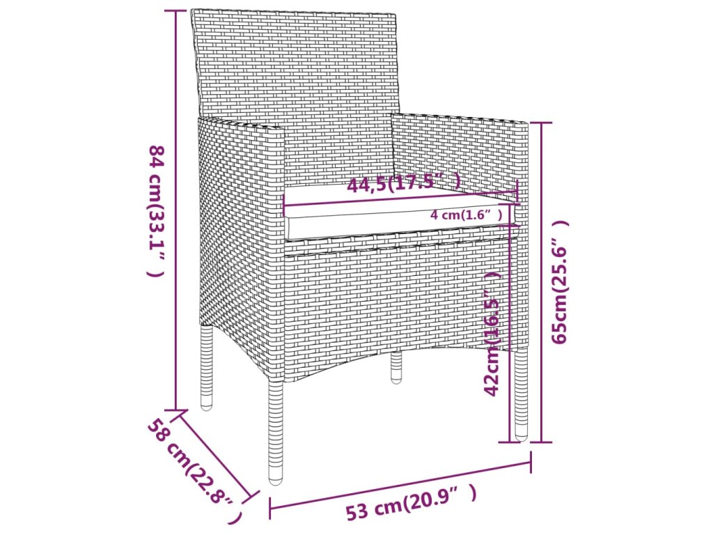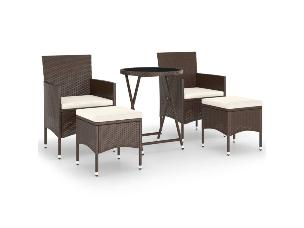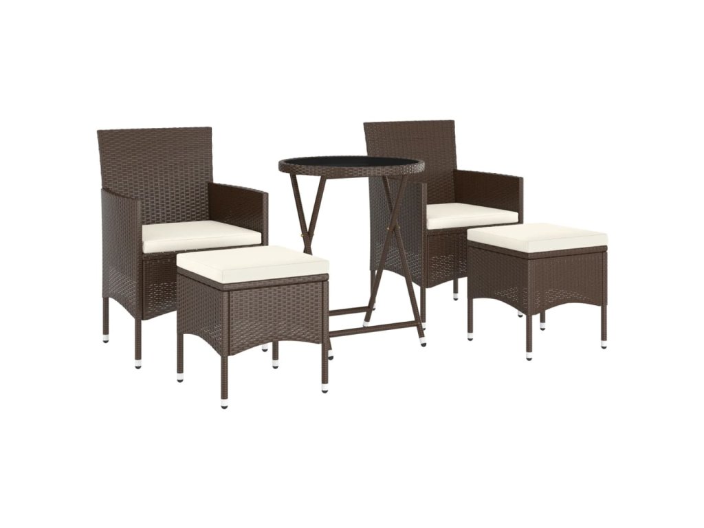 Stůl a židle mají práškově lakovaný ocelový rám opletený PE ratanem, který skvěle odolává povětrnostním vlivům i UV záření, jsou tedy stabilní a mají dlouhou životnost. Židle jsou navrženy se zaobleným opěradlem a područkami pro maximální pohodlí. Součástí balení jsou také podušky, které vám poskytnou ještě větší komfort. Potah je navíc vybaven zipem, takže se dá jednoduše sejmout a vyprat. Stolní deska je zhotovená ze zesíleného tvrzeného skla zasazeného v pevném rámu, snadno se tedy čistí a udržuje. Dvě podnožky zároveň slouží jako dodatečná místa k sezení. Nábytek se vyznačuje lehkou konstrukcí, všechny kusy lze tudíž bez námahy přemisťovat, přestavovat a přepravovat.