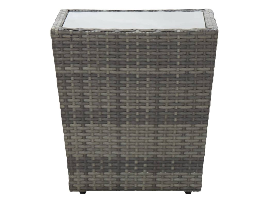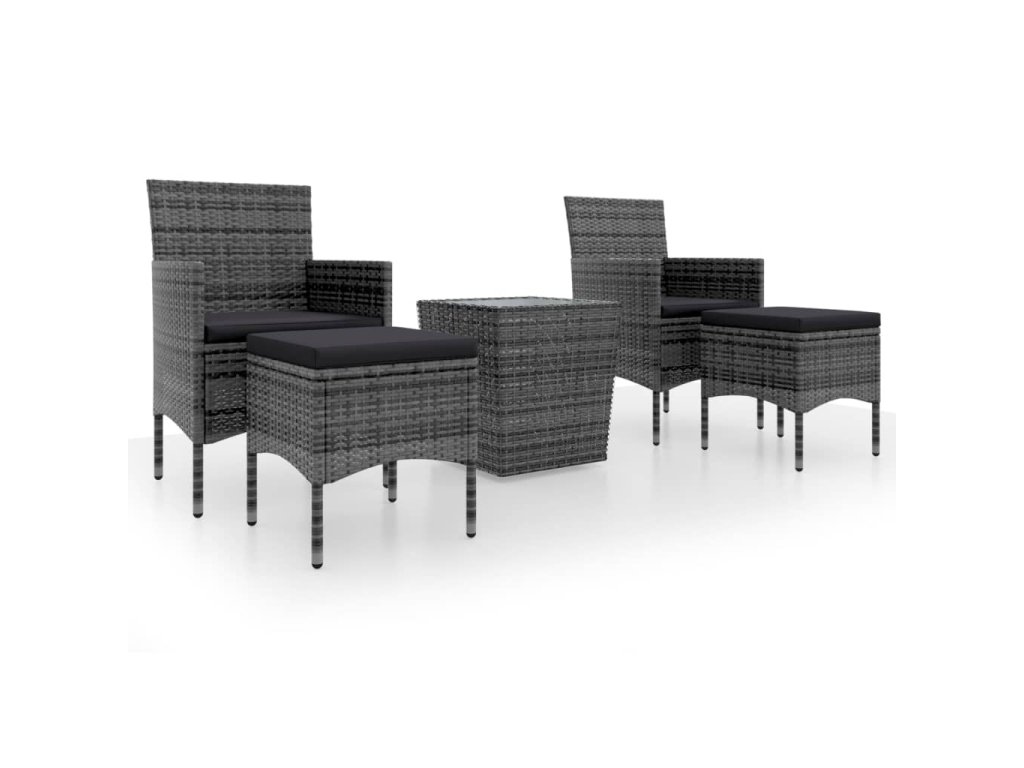Stůl a židle mají práškově lakovaný ocelový rám opletený PE ratanem, který skvěle odolává povětrnostním vlivům i UV záření, jsou tedy stabilní a mají dlouhou životnost. Židle jsou navrženy se zaobleným opěradlem a područkami pro maximální pohodlí. Součástí balení jsou také podušky, které vám poskytnou ještě větší komfort. Potah je navíc vybaven zipem, takže se dá jednoduše sejmout a vyprat. Stolní deska je zhotovená ze zesíleného tvrzeného skla zasazeného v pevném rámu, snadno se tedy čistí a udržuje. Dvě podnožky zároveň slouží jako dodatečná místa k sezení. Nábytek se vyznačuje lehkou konstrukcí, všechny kusy lze tudíž bez námahy přemisťovat, přestavovat a přepravovat.