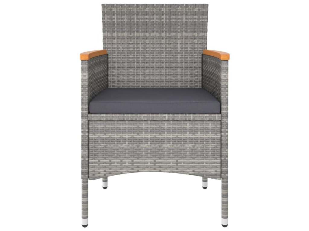 Stůl a židle mají práškově lakovaný ocelový rám opletený PE ratanem, který skvěle odolává povětrnostním vlivům i UV záření, jsou tedy stabilní a mají dlouhou životnost. Židle jsou navrženy se zaobleným opěradlem a područkami pro maximální pohodlí. Součástí balení jsou také podušky, které vám poskytnou ještě větší komfort. Potah je navíc vybaven zipem, takže se dá jednoduše sejmout a vyprat. Stolní deska je zhotovená ze zesíleného tvrzeného skla zasazeného v pevném rámu, snadno se tedy čistí a udržuje. Dvě podnožky zároveň slouží jako dodatečná místa k sezení. Nábytek se vyznačuje lehkou konstrukcí, všechny kusy lze tudíž bez námahy přemisťovat, přestavovat a přepravovat.