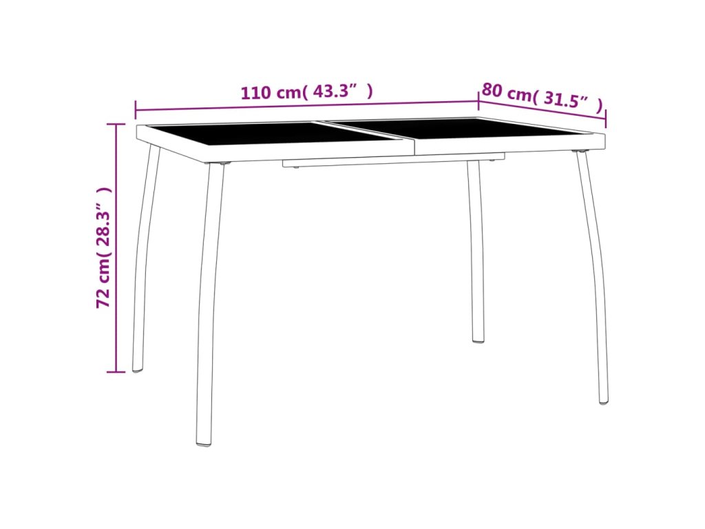 - Stabilní rám: Ocelový rám s práškovým nástřikem a e-coatingem zajišťuje pevnost a stabilitu jídelního setu.