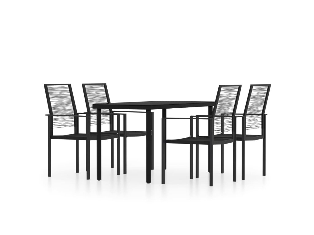 Jídelní set na terasu má práškově lakovaný ocelový rám, stůl i židle jsou tedy velice stabilní a mají dlouhou životnost. Hladká skleněná stolní deska se snadno čistí vlhkým hadříkem a skvěle vám poslouží k podávání jídla a pití nebo k vystavení různých dekorativních předmětů. Židle z voděodolného dutého PVC ratanu jsou odolné, nenáročné na údržbu a vhodné ke každodennímu venkovnímu použití. Opěradla vám navíc při sezení zajistí maximální pohodlí.