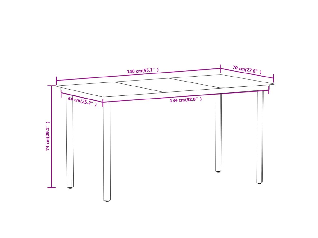 - Rozměry: 140 x 70 x 74 cm (D x Š x V)